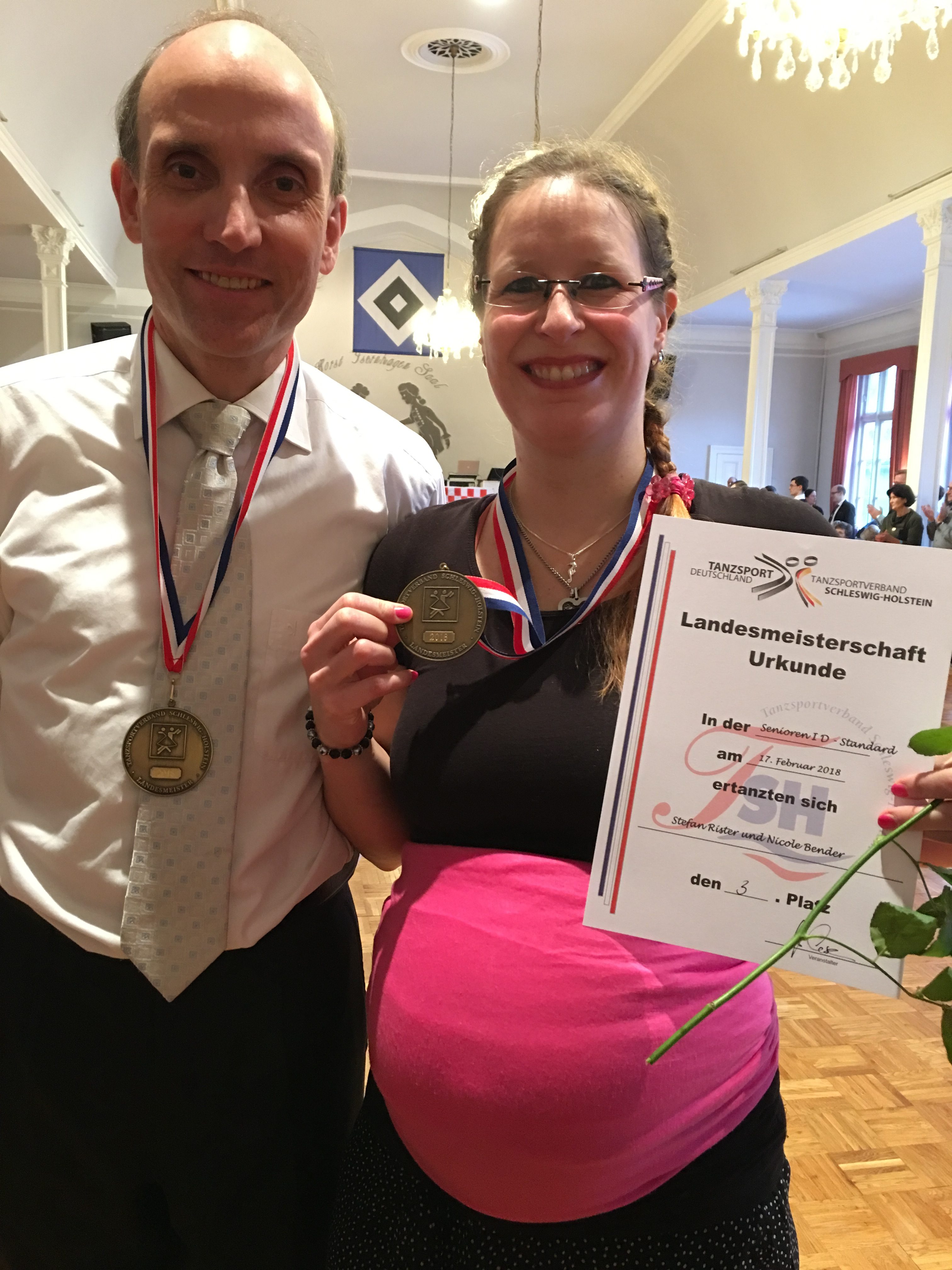 Bei der gemeinsamen Landesmeisterschaft der Landesverbände Schleswig-Holstein, Hamburg, Mecklenburg-Vorpommern und Bremen starteten am Samstag, 17. Februar 2018, für unseren Verein Stefan Rister und Nicole Bender (mit inzwischen deutlich sichtbarem Babybauch) in der Startklasse Senioren I D.