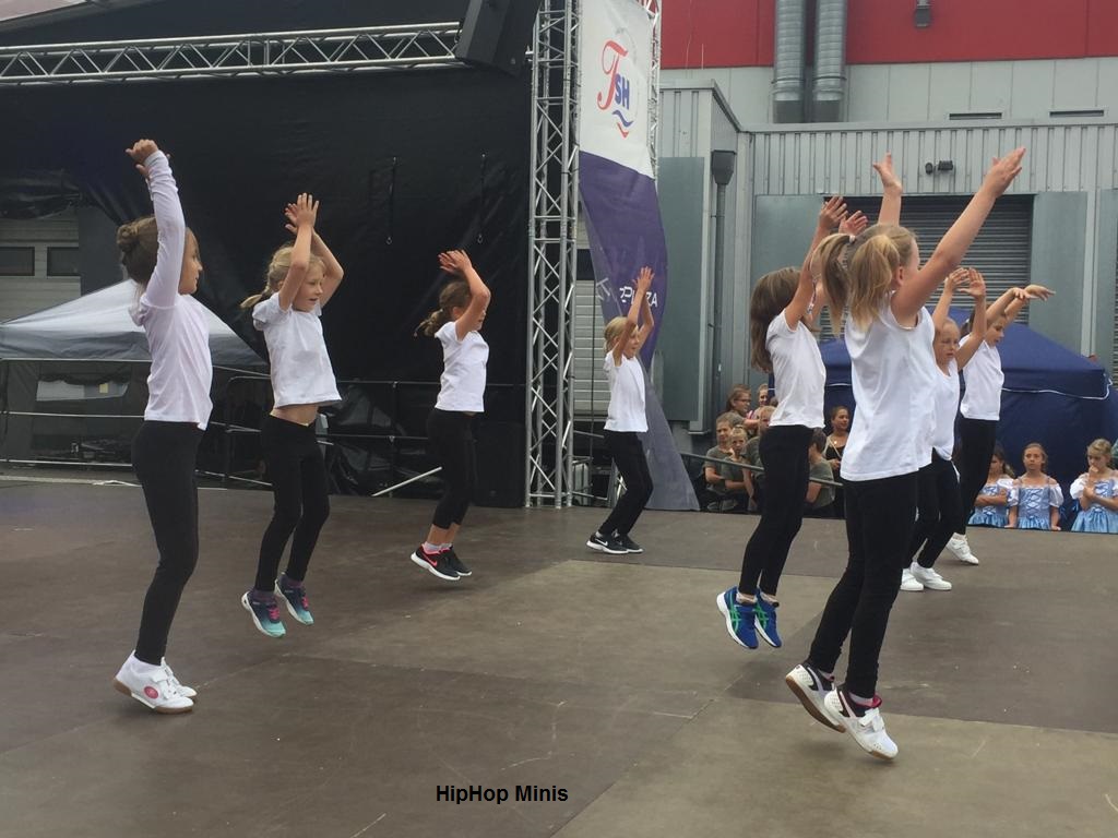 Alle Kinder und Jugendlichen hatten fleißig trainiert. Von den HipHop Minis, über die Ballettgruppen bis zu den jugendlichen HipHopern waren alle am Start. Das Wetter hielt sich und auch zur späten Nachmittagsstunde herrschte auf der Tanzplaza noch reger Betrieb und gute Stimmung. Trotz Aufregung klappte alles gut und den Tänzern und Tänzerinnen, egal ob groß oder klein, war die Freude beim Auftritt anzusehen. Unterhalb der Bilder folgend Videos von den Auftritten.