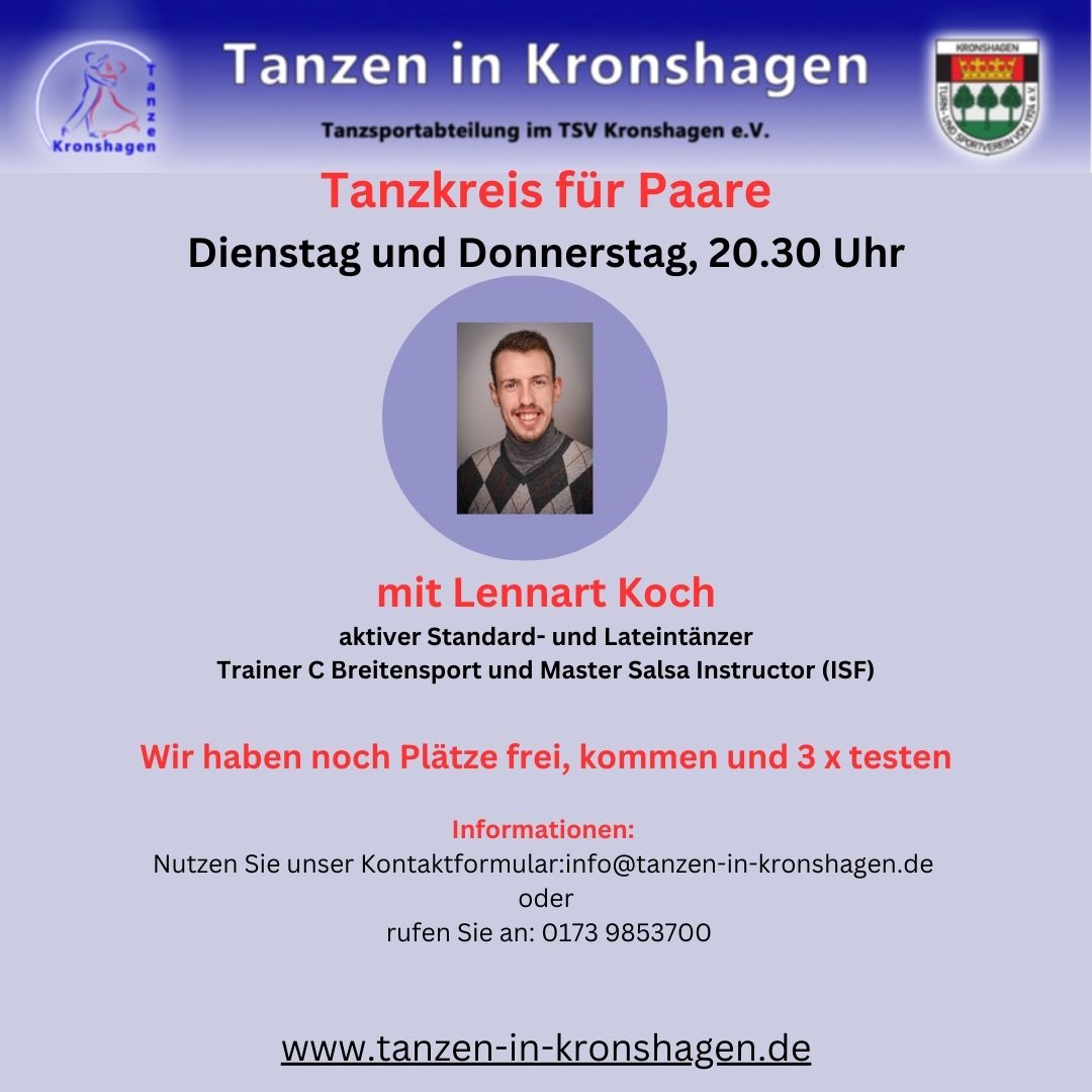 Tanzkreis am Dienstag und Donnerstag, 20.30 Uhr von Susanne Lorenzen · 1. August 2023 Freuen Sie sich auf die Fortsetzung nach den Ferien Share