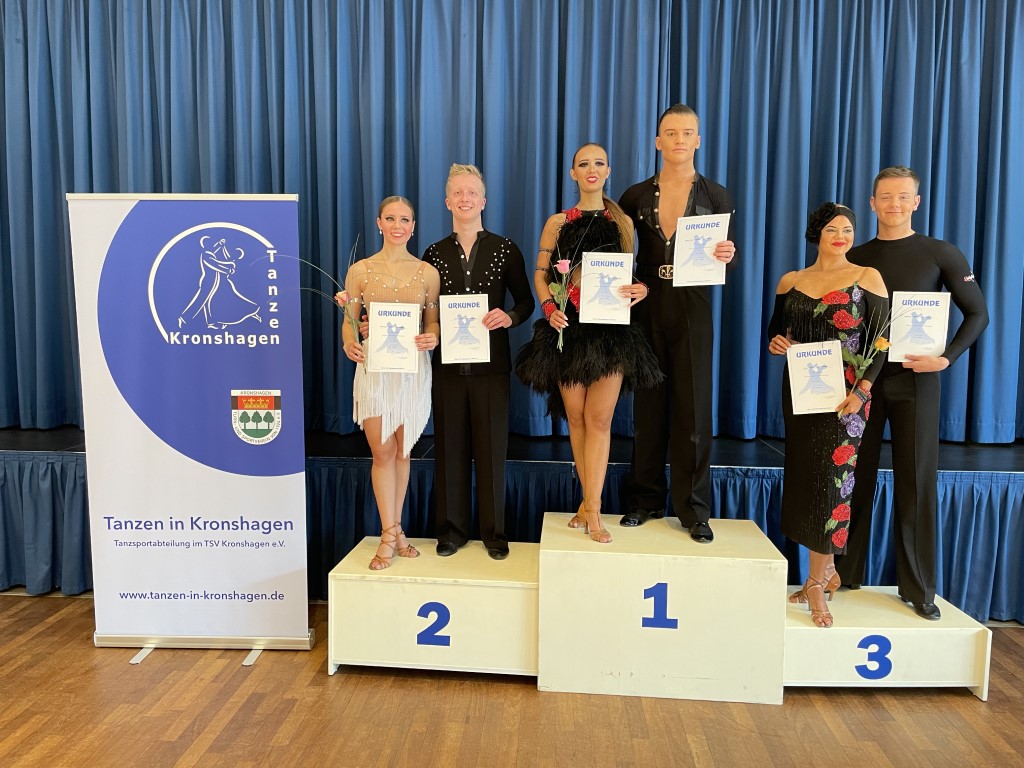 ![]() Siegerehrung HGR B-Latein 1. Platz Finn Nemeth/Svea-Lina Heruth, 2. Platz Lennart Koch/Franziska Wüstney, 3. Platz Michel Eggers/Liv Jaane Memmert |