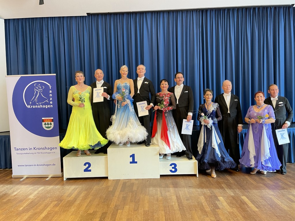 Siegerehrung Sen IV S Standard 1. Platz Dr. Marcel Erné/Birgit Suhr-Erné, 2. Platz Erich und Ingrid Bockhahn, 3. Platz Eckhard und Heike Sarnow, 4. Platz Manfred und Inge Selck, 5. Platz Gero und Margarita Heere |